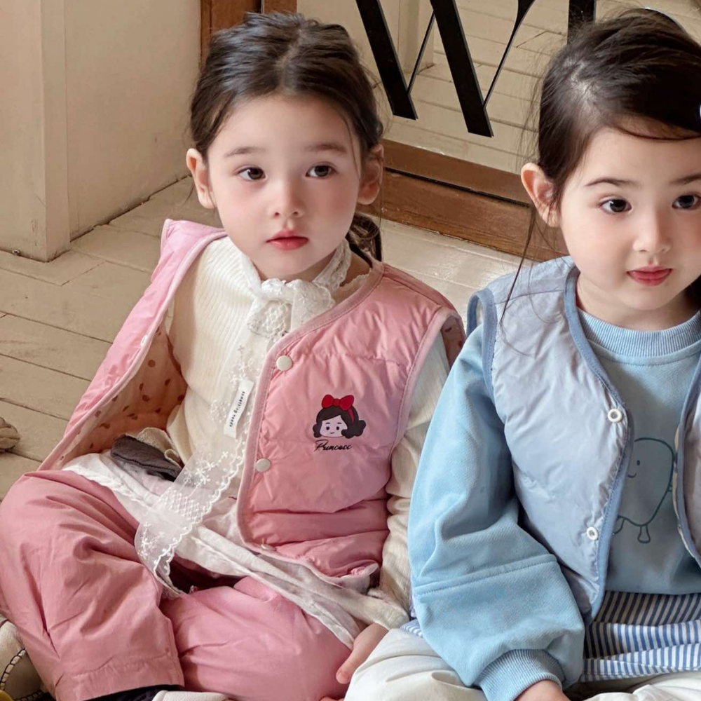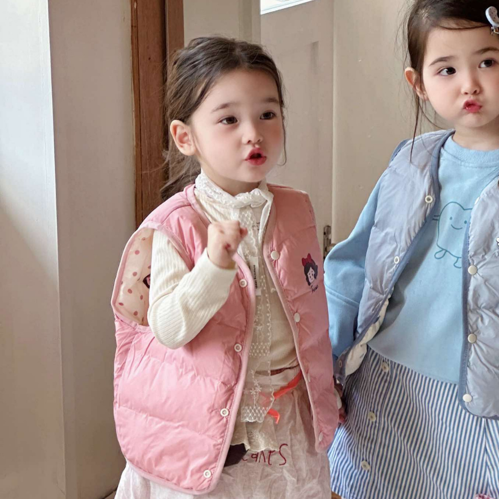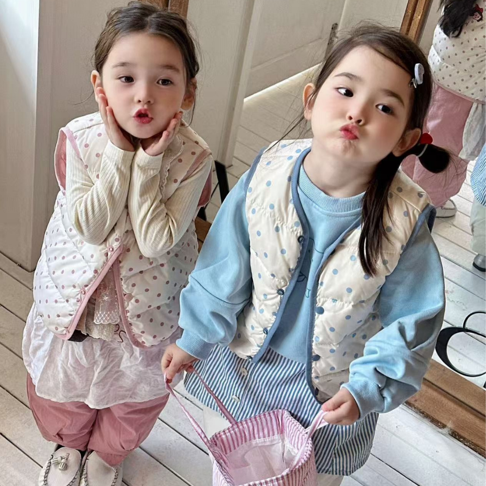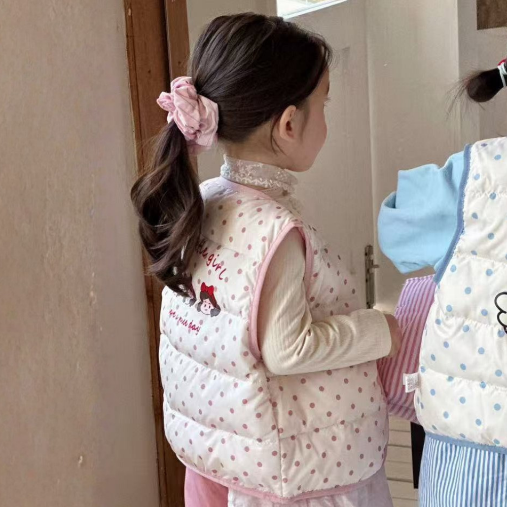 Our Sweet Little Girl Reversible Puffer Vest features soft pastel tones, cute bow-girl prints, and playful polka dots. Lightweight yet warm β perfect for layering during fall and winter. Wear it on the solid pink side for a simple sweet look, or flip to the polka-dot print side for extra charm!