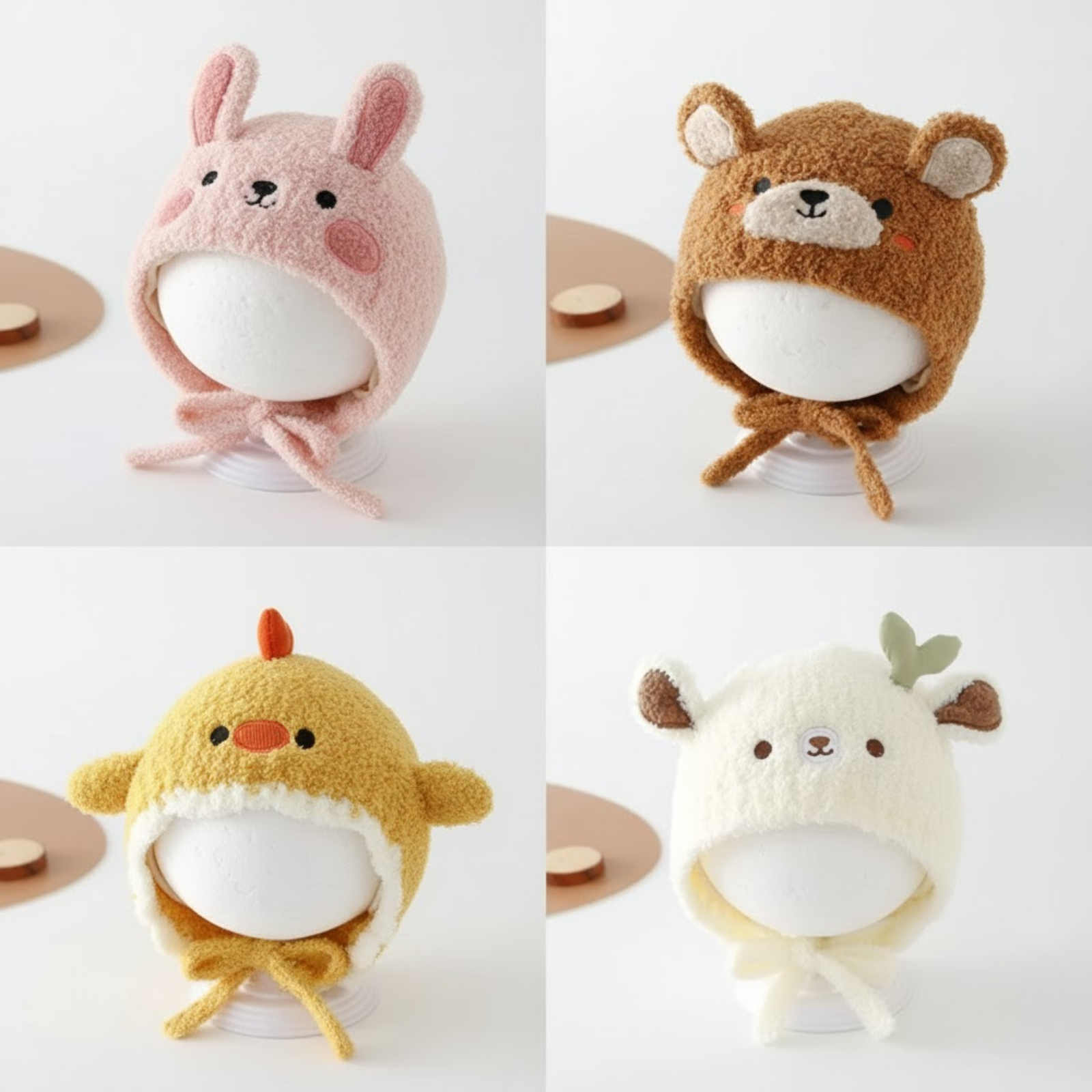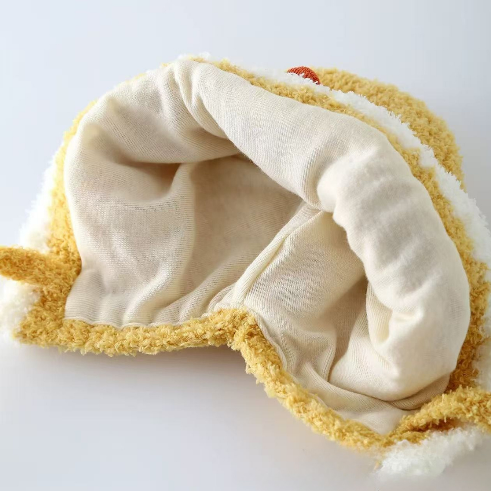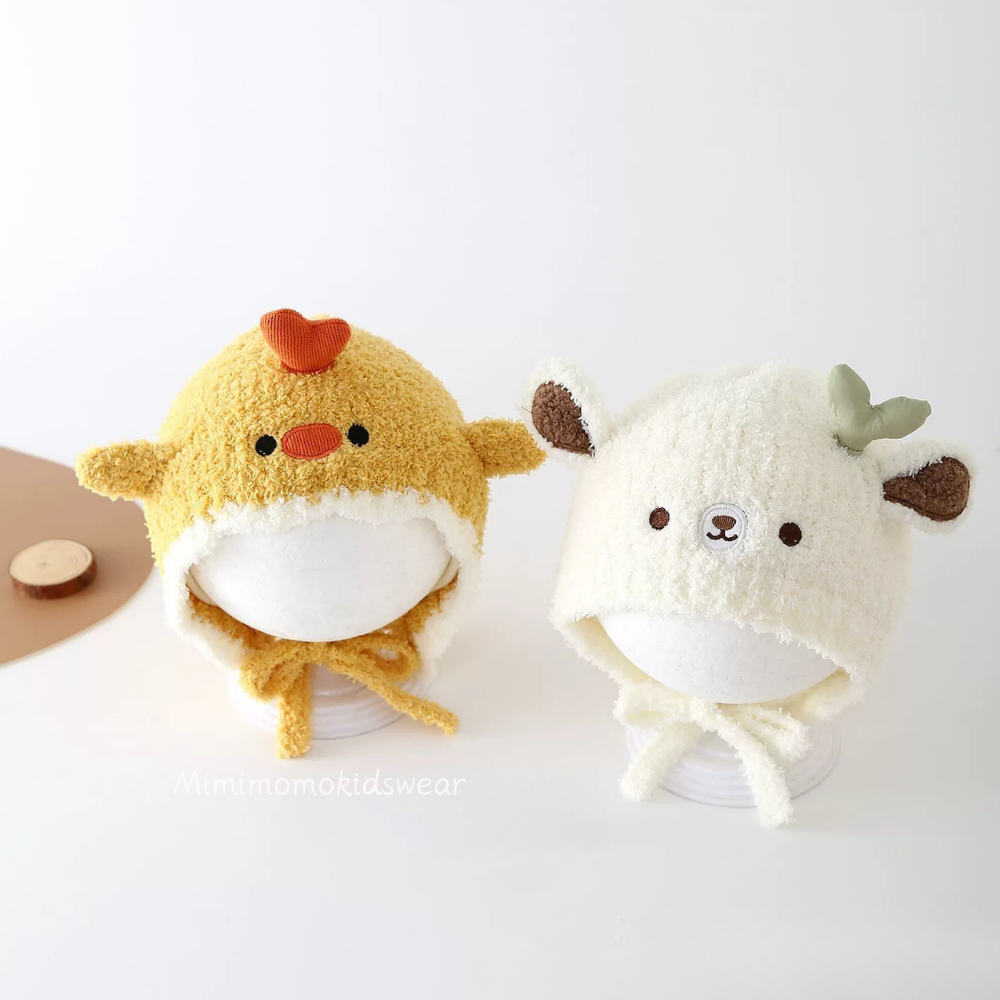 Each hat features a soft, cozy lining and chin ties to keep it snug and warm — perfect for chilly days and photo-ready cuteness.